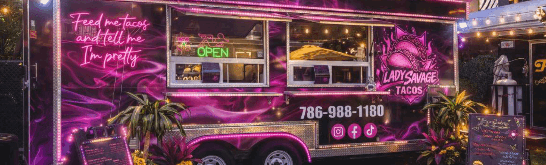 Lady Savage Tacos is Miami, FL's go-to late-night destination for bold, loaded street tacos packed with big flavor and even bigger energy. We bring the vibes every night, serving up craveable tacos that keep people coming back for more. Our signature drip sauce, made in-house, is the secret weapon that turns every bite up a notch. Whether you're grabbing walking tacos on the go or settling in for a full spread at our outdoor seating, we make every visit an experience worth remembering. As a women-owned business, we take great pride in what we put on the plate and the culture we bring to every single taco we serve.
